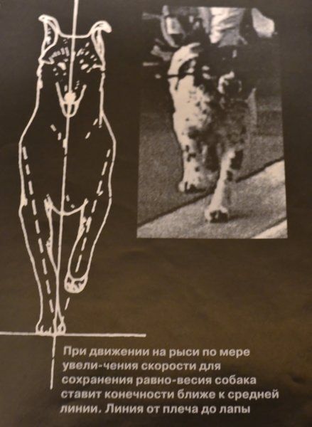 Оценка строения корпуса собаки по его функциональности - непростое дело. Мы уже указывали на то, что естественная гармония движения основана на совместной работе отдельных частей корпуса, в частности, основных элементов передних и задних конечностей и самого корпуса, и такая гармония возможна, если эти основные элементы также анатомически находятся в правильных пропорциях по отношению друг к другу, и к корпусу по их длине и развитию. Конечности должны быть в правильных пропорциях друг кдругу и ко всему корпусу. Их можно измерить и установить соотношение и правильное развитие по этим соотношениям. Практически мы обходимся без измерительных приборов, оцениваем на глаз. Измерения используются для научных исследований или идентификации собаки. Для оценки соответствующих пропорций есть более простое средство — движения, особенно на рыси и специфические особенности осанки собаки. Если собака в движении показывает естественную рысь, особенно при ускорении аллюра, тогда с определенной степенью вероятности можно установитьсоотношение между отдельными частями корпуса. Небольшие физические недостатки могут быть скомпенсированы физиологическим взаимодействием в движении, поэтому не требуется идеального соответствия. Естественной рысью идут, в частности, охотничьи собаки, которые по форме представляют значительно удлиненный прямоугольник. У собак другого назначениях такой формат будет у колли, бультерьера, черно-рыжих терьеров, и т.д. Имеются же многие представители, особенно бультерьеров, не склонных к естественной рыси из-за неблагоприятного постава передних конечностей. Однако сама по себе относительная коротконогость благоприятствует естественной рыси, т.к. такие собаки при выносе вперед передних конечностей одновременно с задними на рыси менее склонны раскачивать корпусом в задней части. При характерном перпендикулярном положении конечностей вниз от локтя при толчке — часто недостаточна амплитуда выноса ноги, что, напротив, является благоприятным для собаки с длинными костями, особенно передних конечностей, которые поэтому близки к квадратному формату — это идеальное положение конечностей для них. А т.к. это наиболее выгодное положение, то анатомически это обуславливается также благоприятно. Поэтому мы можем обходиться без измерений, с одного взгляда установив, является ли соотношение по длине и развитию всего корпуса и частей правильным. Но это, хотя и облегчет задачу, не так легко выполнить.
